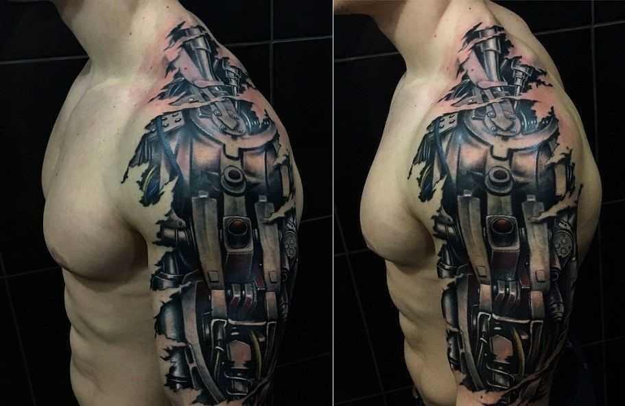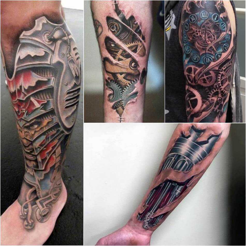Биомеханический стиль работает в мире татуировки как ренессанс в современном искусстве. На самом деле эта тема связана с голливудскими фильмами 80-х годов, в которых люди выступали в роли роботов или киборгов.