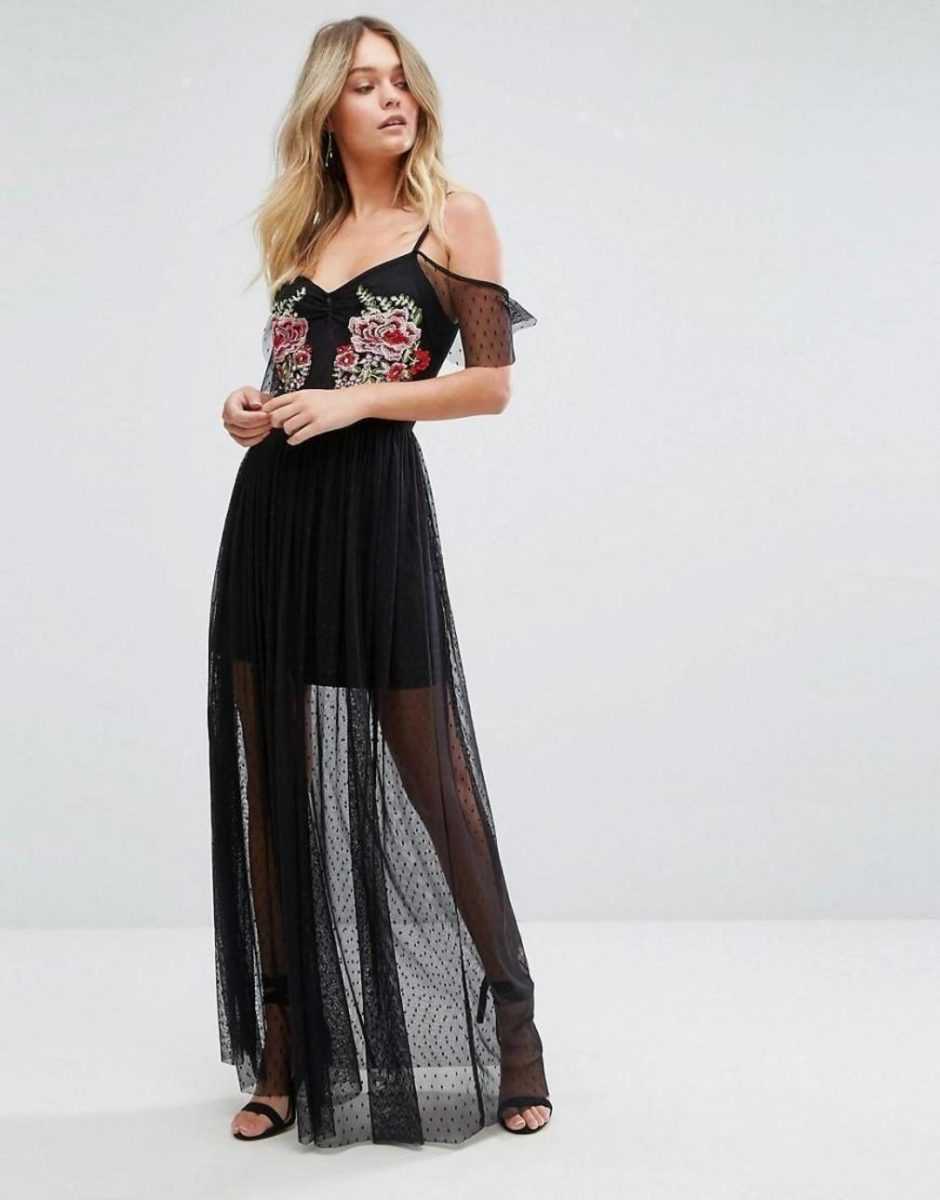 Выбирая платье для вечеринки, нельзя не обратить внимания на фасон бандо без бретелей и с глубокой линией декольте.