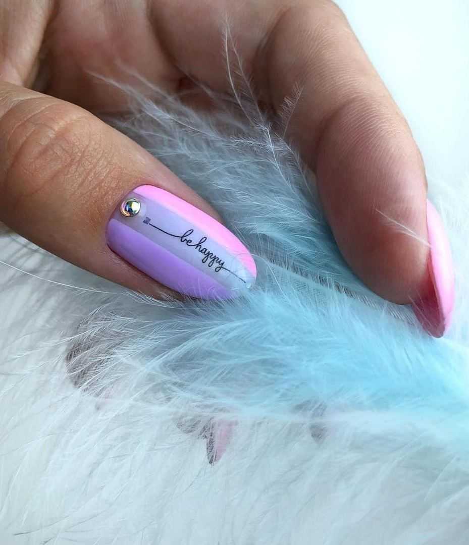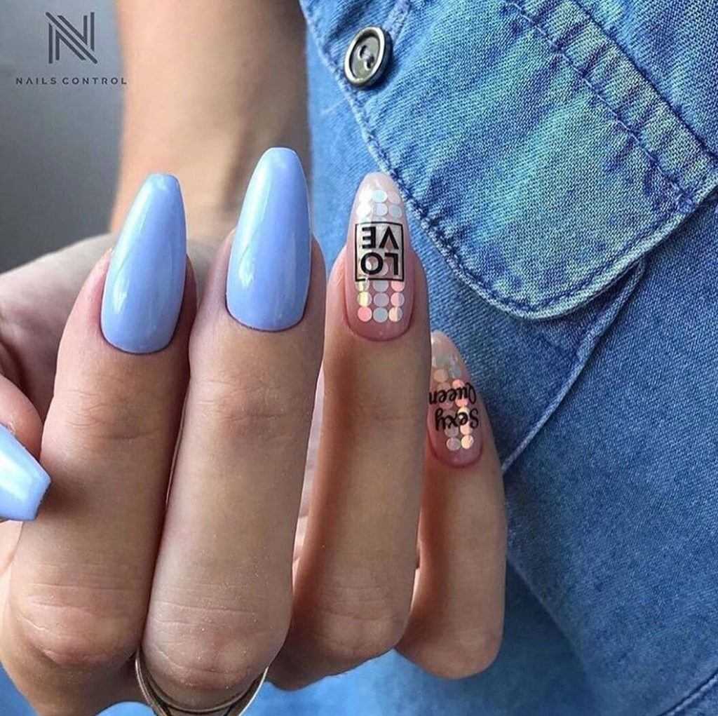 Надписи на ногтях – популярных тренд последних сезонов. Если вам есть что сказать окружающим, то не упустите возможность сделать это с помощью маникюра. Что именно размещать на ноготках зависит только от самой девушки. Это могут быть простые фразы «Love» или мотивирующие «Just do it» и т.д.