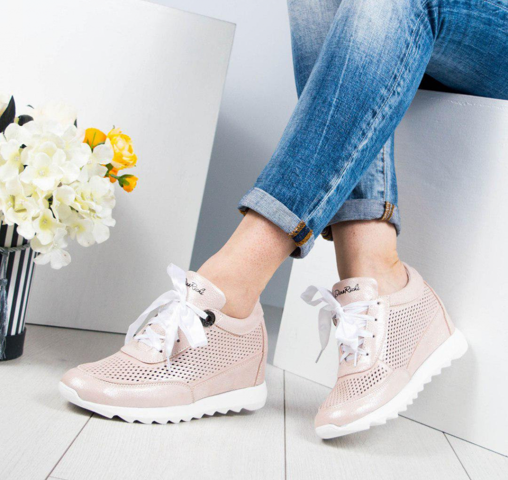 Кроссовки на танкетке называются сникерсами. У данной модели резиновая утолщенная подошва, которая еще больше увеличивается в области пятки. Такой «невидимый каблук» особенно хорош для девушек невысокого роста. В сникерсах ощущаешь себя комфортно, благодаря устойчивой платформе. Они бывают кожаные и тканевые, со шнуровкой, липучками или заклепками.
