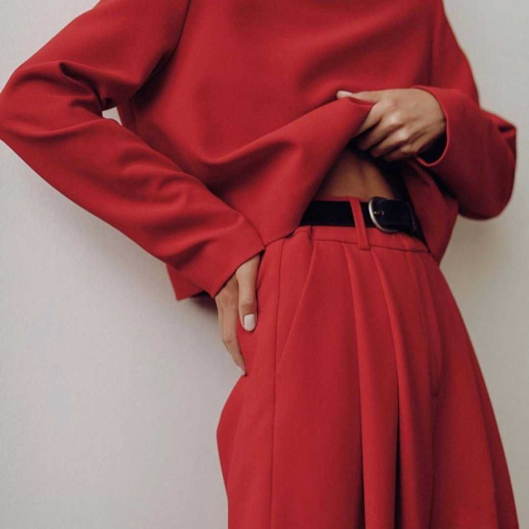 - Монохромный look позволяет выгодно обыграть акценты, к примеру аксессуары или яркую помаду.