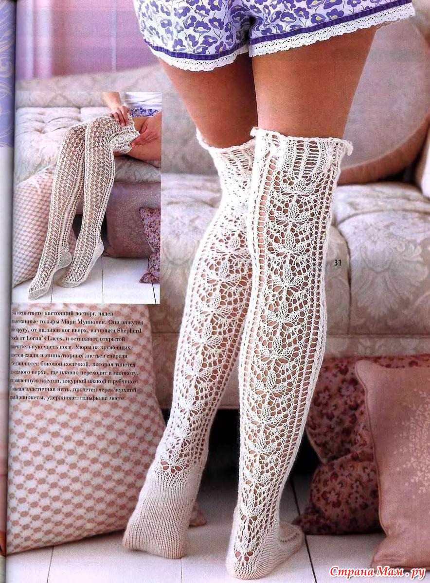 Гольфы до середины икры и винтажное платье дополнят образ для деловой встречи. А кружевная пара идеально для вечерней прогулки. Полупрозрачная длинная юбка с трикотажными гольфами составляют интересный дуэт.
