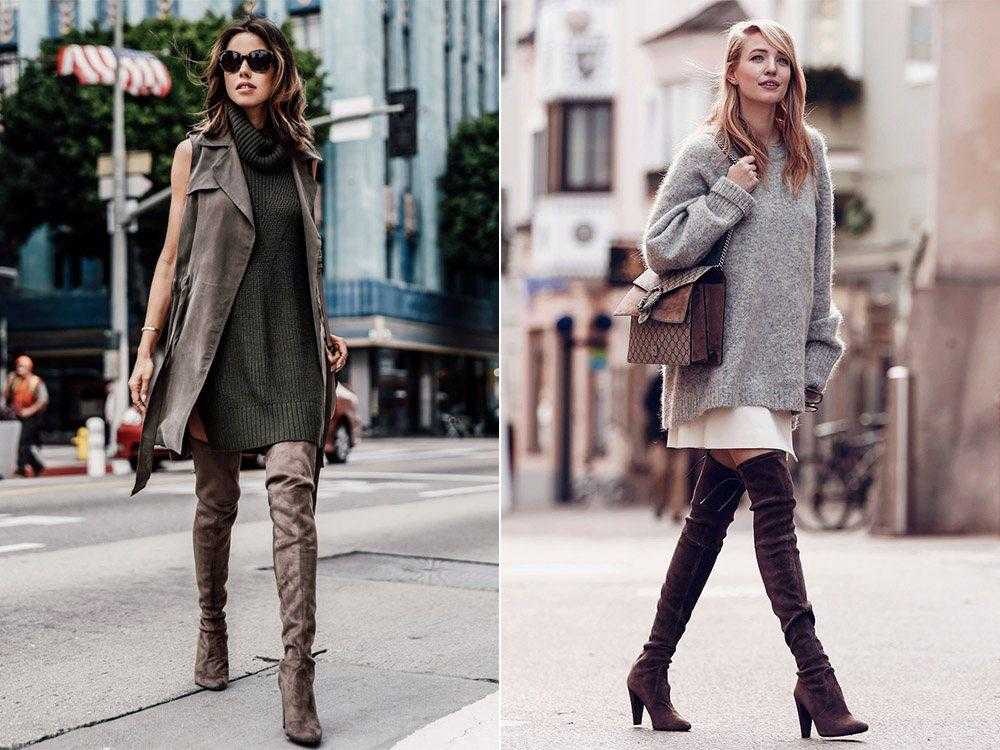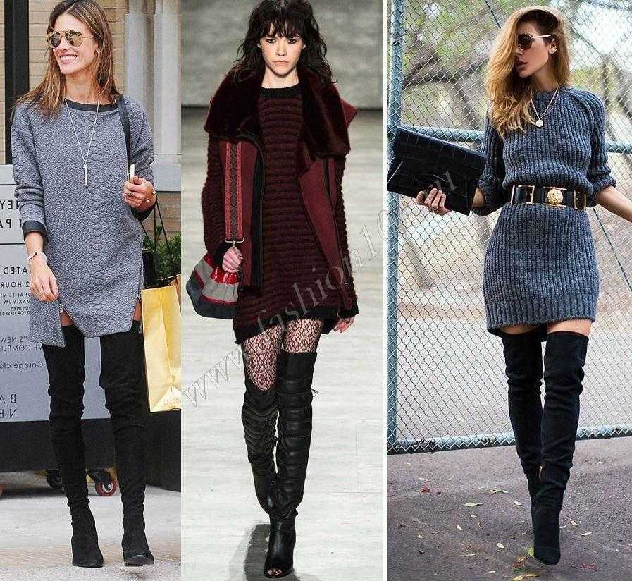 Ответ прост – с короткими сапожками, если платье любой длины или с длинными – если оно короткое. Такой образ смотрится элегантно, свежо, но в то же время вам тепло и комфортно, ведь, как правило, вязаные платья создают ощущение уюта и их основная функция – согревать вас в холодный зимний день, они длинные, плотные и не позволят вам замерзнуть.