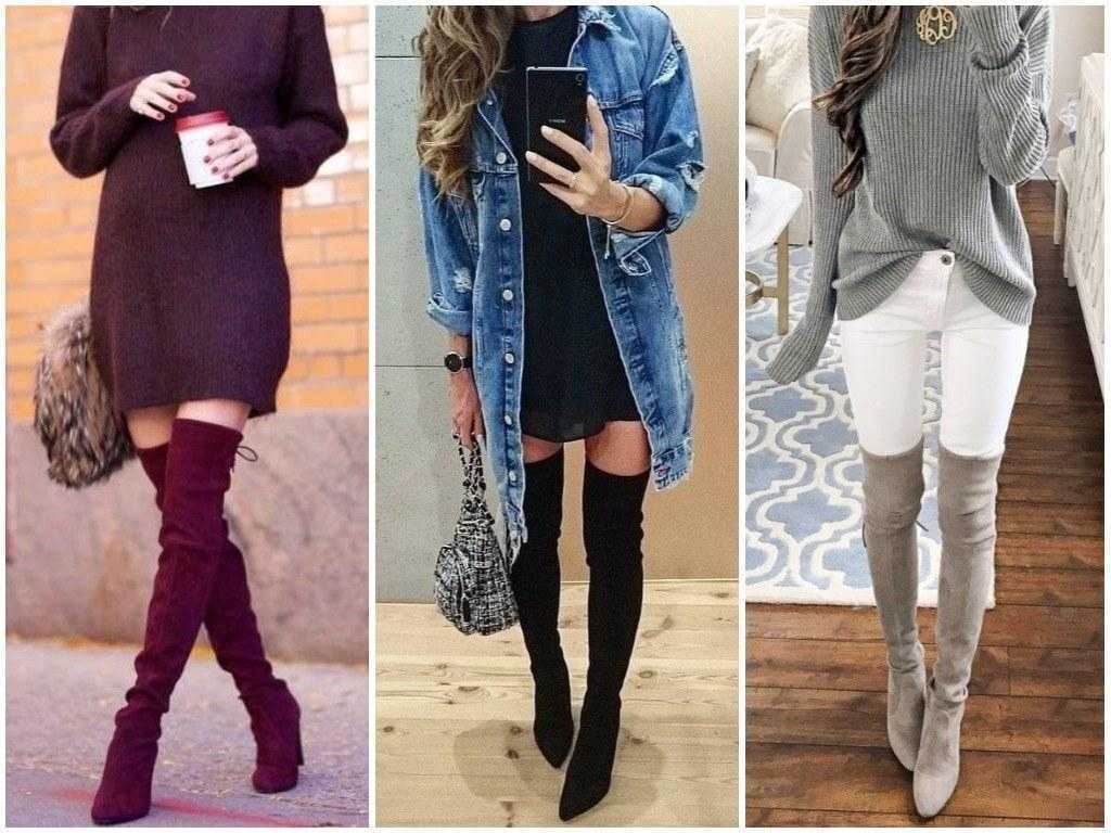 Сапоги, которые плотно прилегают к ноге, производят из тонкой кожи, замши или эластичного текстиля. Длина таких моделей бывает чуть выше колена или доходит до середины бедра.