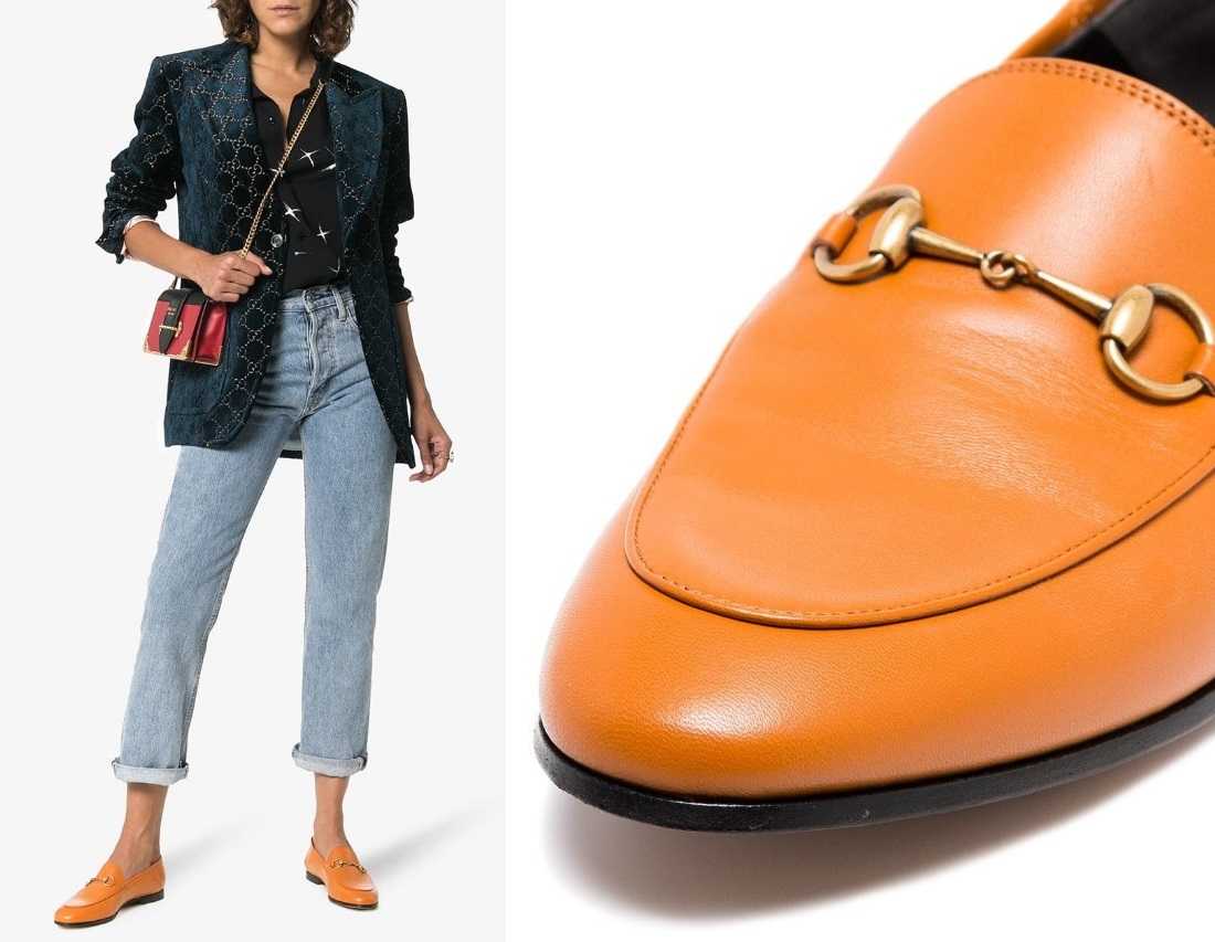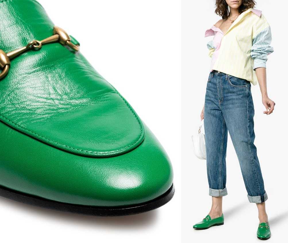 Отличия первых лоферов с плоской подошвой и с небольшим каблуком на несколько сантиметров можно увидеть на фото которые представлены ниже и это может помочь понять разницу обуви прошлых лет и нового тренда этого года.