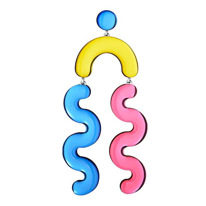 Крупные серьги из металла и пластика были очень популярны в 1960-х — 1970-х годах. Они напоминали кинетические скульптуры и музейные арт-объекты. Сейчас подобные аксессуары тоже актуальны. Например, источником вдохновения для коллекции «Мемфис» российского бренда Monolama послужило наследие арт-группы Memphis. Пластиковые украшения чем-то похожи на бижутерию, которую носили Твигги, Катрин Денев и Элизабет Эшли. Эффектные вещи есть и у других российских брендов. Многие из них представлены в магазинах Dаfna. В двух питерских магазинах и одном московском, открывшемся совсем недавно на «Хлебозаводе», представлены ювелирные марки из Челябинска, Екатеринбурга, Калининграда, Санкт-Петербурга и Москвы.