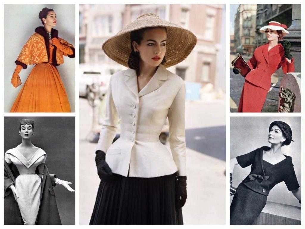 Сразу после окончания Второй мировой войны женские вещи мало чем отличались от мужских. Преобладал строгий стиль одежды с широкими плечами и прямым силуэтом. Но как только жизнь начала налаживаться, среди моделей именитых дизайнеров появились утонченные образы и изящные платья, выгодно подчеркивающие женскую фигуру.