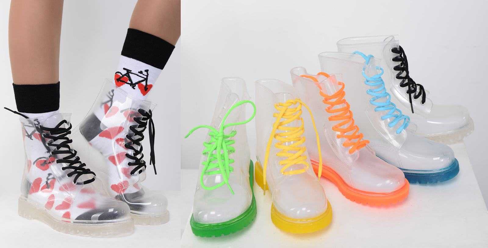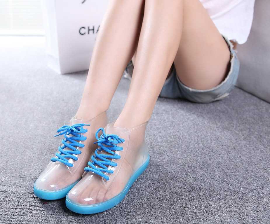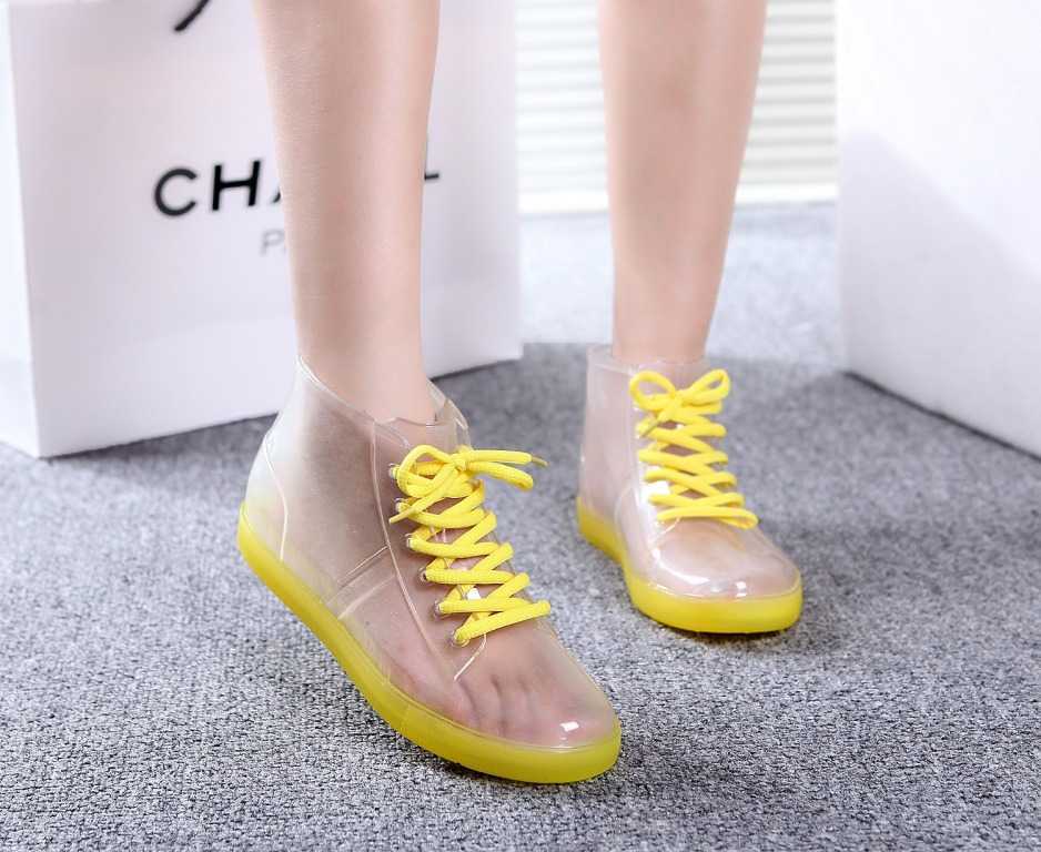Прозрачная обувь как правило выполнена из прочной и мягкой резины. В таких ботинках вы точно не промокните в дождливую погоду, рельефная платформа спасет ваши ноги от слякоти. Такая обувь позволит вам выглядеть стильно и оригинально даже в непогоду.
