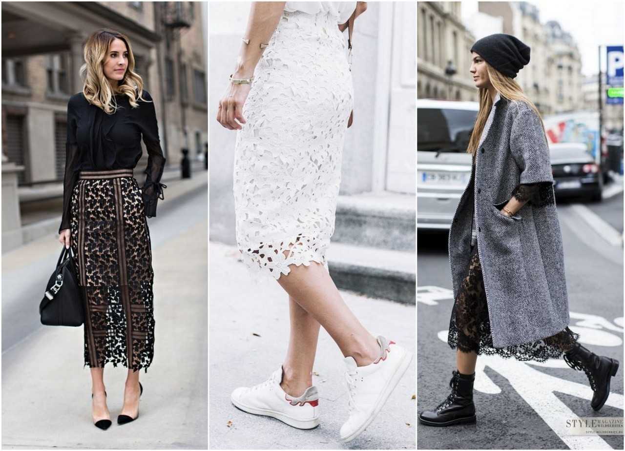 Кружево. Для работы, офиса, романтических свиданий можно приобрести юбку-карандаш средней длины из кружева. Она смотрится очень женственно, подчеркивает фигуру и отлично сочетается с туфлями и босоножками на каблуке.