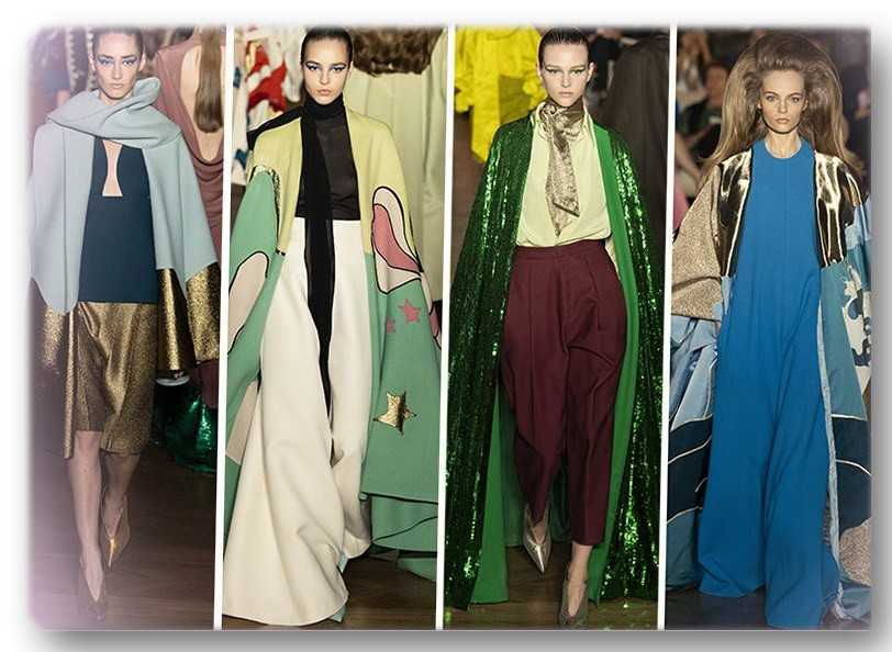 Основных стилей одежды несколько. Временной цикл моды, выбранный для осени и зимы 2018/19, 70-е годы. Безусловно есть мотивы и других лет, но эти являются главными.