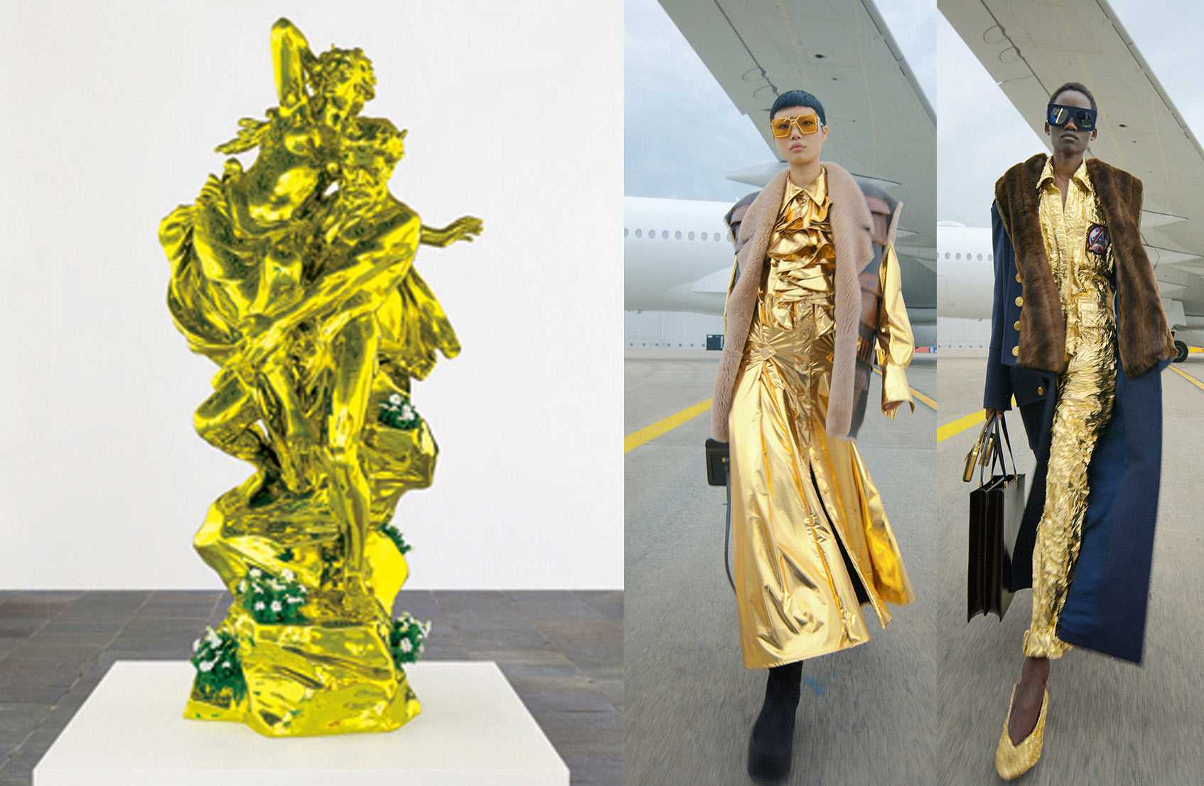 На смену аскетичным 1990-м приходят нулевые. Гламур в эпоху постиронии превратился в поп-арт-объект в масштабах индустрии. Во время пандемии в обществе потребления главное — стабильность. Кому нужна золотая Кейт Мосс Марка Куина, если есть фальшивая грудь Schiaparelli и #metoo? Искусство волатильно. Сумка Hermès Kelly — вечна. Выбор между крупногабаритными «бусами» Жана-Мишеля Отоньеля и сверкающей игрушкой Jil Sander очевиден.