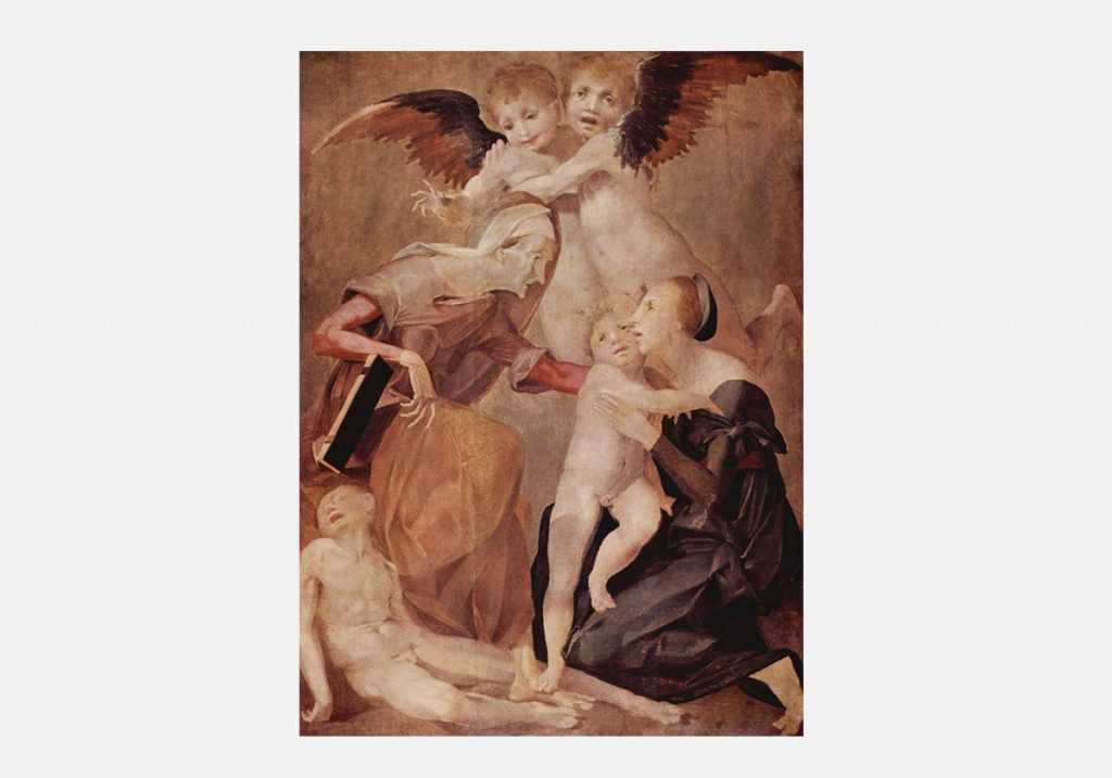 Стоит только взглянуть на работу Россо Фьорентино «Святое семейство», которая была написана в 1520 году, чтобы понять, что время Ренессанса закончилось. Приверженность к золотым краскам, диспропорциональности персонажей и отсутствию внятного заднего фона явно напоминают о готическом каноне, но в то же время становятся элементами нового течения.