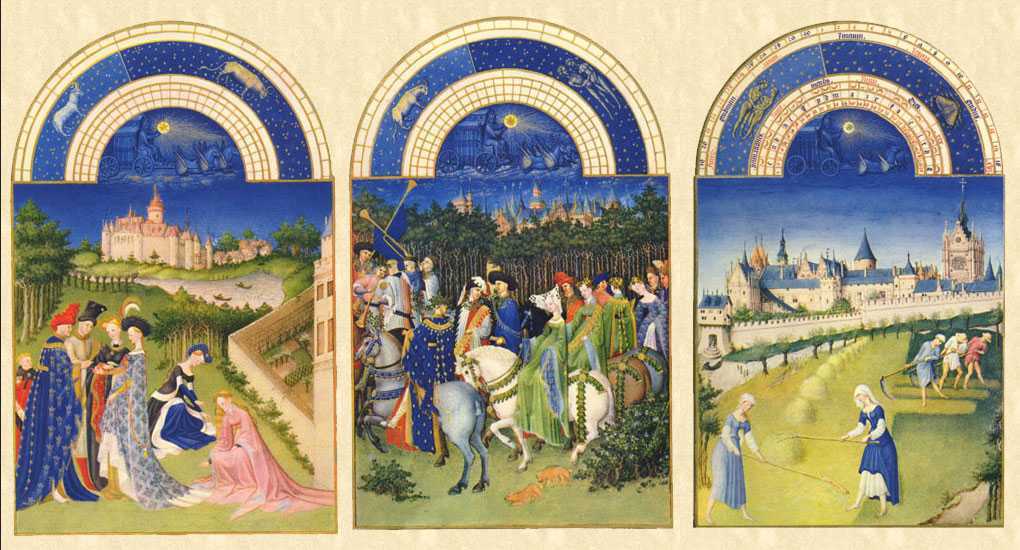 В данной связи следует вспомнить Поля, Эрман и Жеаннекен Лимбургов, которые в начале 15-го века трудились под покровительством герцога Жана Беррийского, являвшегося видным коллекционером предметов искусства. Именно братья Лимбурги создали причудливый «Великолепный часослов герцога Беррийского» — венец их творения и одно из главных произведений средневекового изобразительного искусства. Миниатюры времён года изображают сцены из средневековой жизни знати и простого народа: охоты и пиров, жатвы и сева.