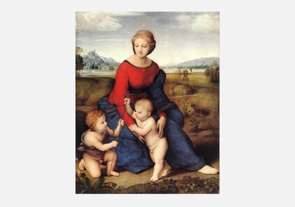 Рафаэль проанализировал накопленные знания предшественников и использовал их в своей работе «Мадонна в зелени», задействуя солнечный свет, природные цвета, правильные пропорции и ясность изображения. Его персонажи крепко стоят на ногах, а цвета картины яркие и насыщенные. Кроме того, в фигурах прослеживается тщательная работа с анатомией, которая позволяет персонажам картины выглядеть естественно.