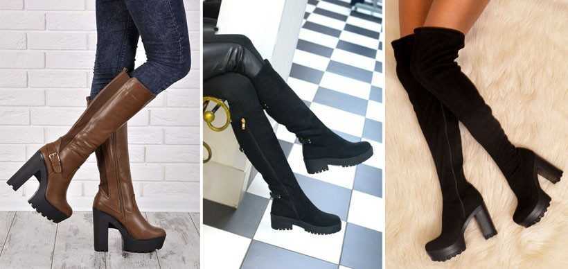 Сапоги, в том числе высокие – ботфорты на тракторной подошве – это не только эффектно и стильно, но и действительно удобно для самой суровой осенней или зимней погоды. Благодаря высокой платформе ноги не замерзнут и не промокнут, рифленая подошва не позволит скользить в гололед, а сам фасон обуви визуально позволит удлинить ноги и чудесно дополнить образ в различном стиле. Причем сапоги и ботфорты смотрятся одинаково эффектно и на каблуке и на платформе, подходят как стройным девушкам, так и более крупным барышням с соблазнительными формами.