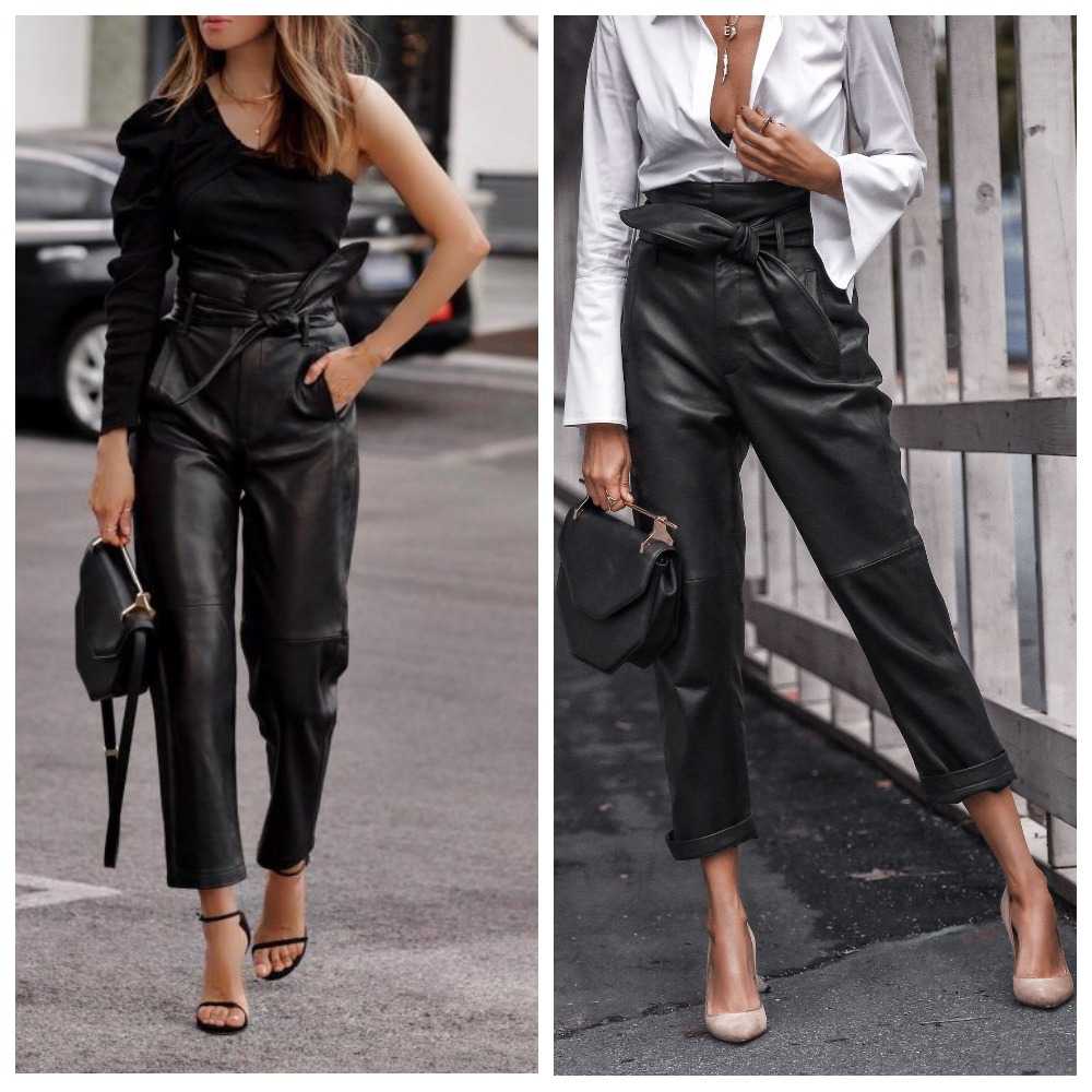 Я рекомендую брать максимально лаконичные кожаные брюки. Поверь, они и без вспомогательных средств сделают образ довольно заметным и будут выделят тебя среди других девушек.