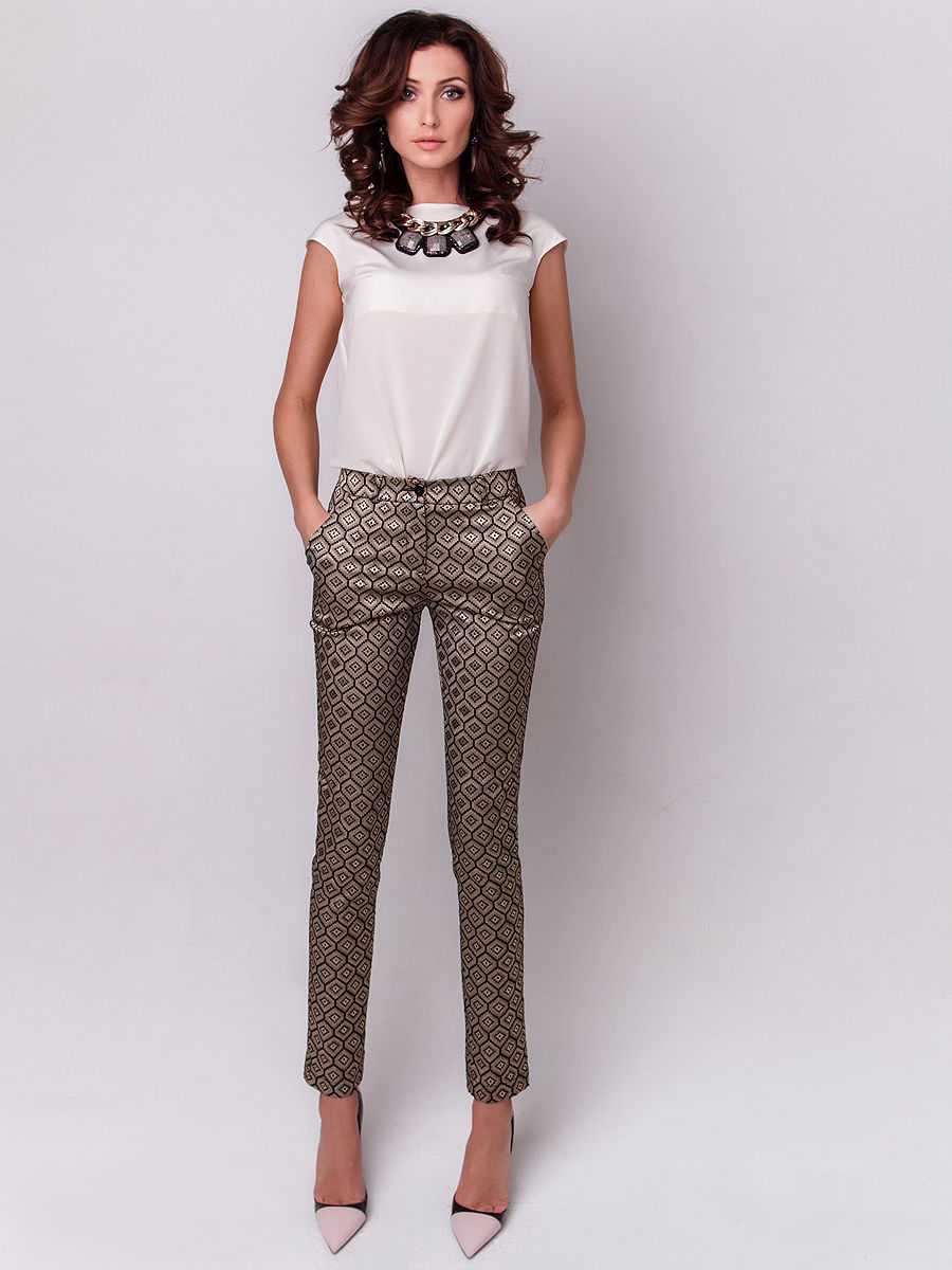А сочетание с яркими блузами или даже блузами в тон к брюкам – заставит обратить на вас внимание. Такой вариант уместен на вечеринках, светских раутах и выставках