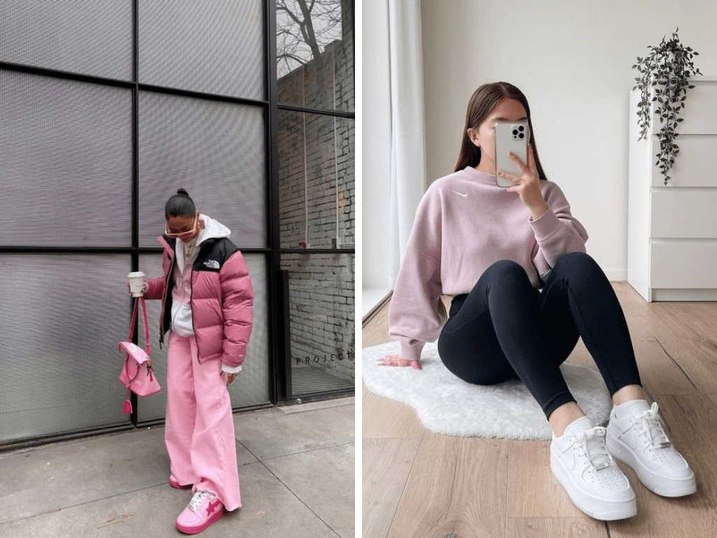 Кроссовки подходят для легких спортивных палаццо на резинке, выполненных из трикотажа.