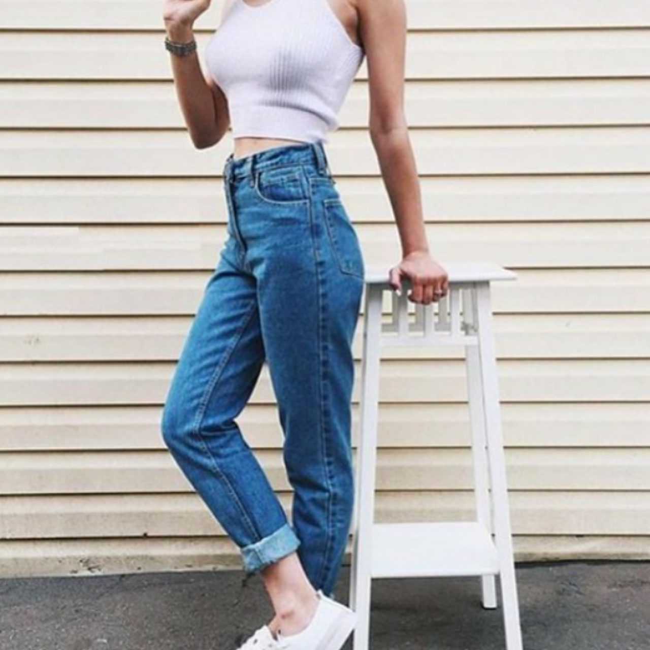 Ширина брючин. Как и традиционные джинсы, модели с высокой посадкой бывают узкими, широкими и клеш. Если вам не подходят расклешенные брюки или модели с узкими штанинами, то и джинсы с высокой талией также могут сыграть плохую шутку