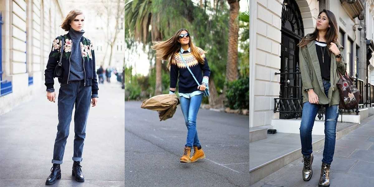 Хорошо смотрятся с джинсами сапоги, стилизованные под мужские. Их можно носить как с совсем узкими джинсами, так и с джинсами средней длины. Выигрышным вариантом будет надеть под такие сапоги джинсы со многими карманами или джинсы-бойфренды.