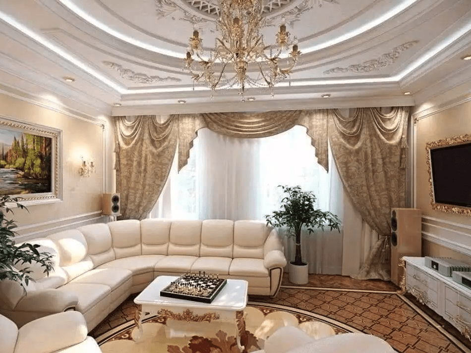 Результат игры от противного – стиль модерн (последние десятилетия XIX). Он полная противоположность традиционным классическим канонам. Посудите сами, главный принцип построения интерьера – отсутствие симметрии во всем, отсутствие прямых линий и углов, только плавные линии, волны, круги, эллипсы. Присутствует большая любовь к витражам и к большому количеству тканей. Они используются для пошива штор, накидок на мебель, наволочек для подушек, скатертей. Сегодня модерн выбирает тот, кто ведёт активный образ жизни, тот, кому нравятся плавные обтекаемые формы и мебель с закруглёнными углами.