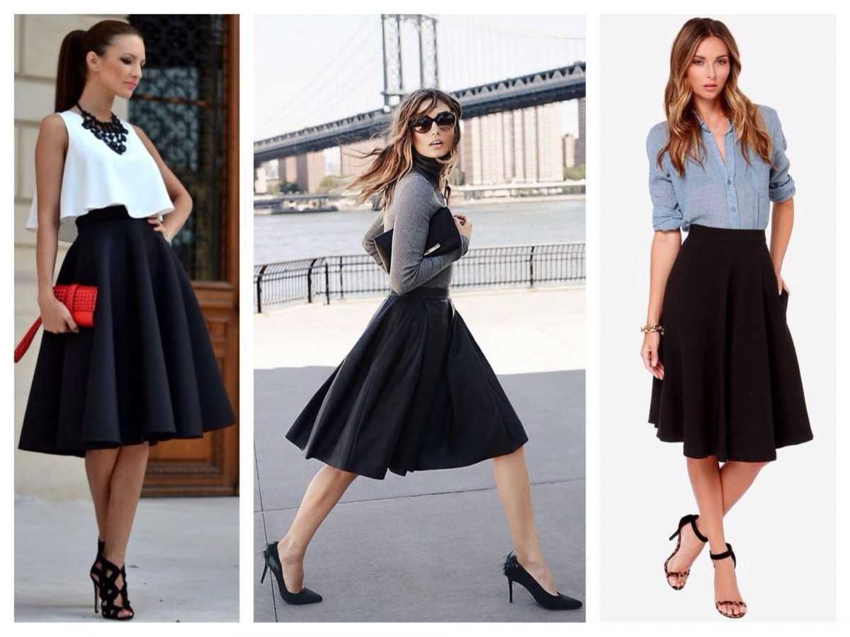 До колен. Это больше костюмный и строгий вариант. Но при подходит почти всем девушкам и будет выглядеть уместно в любом возрасте, если правильно подобрать модель и длину. Модели до колен могут быть разных фасонов: от прямых до пышных, с разрезами и без, облегающие и свободные.