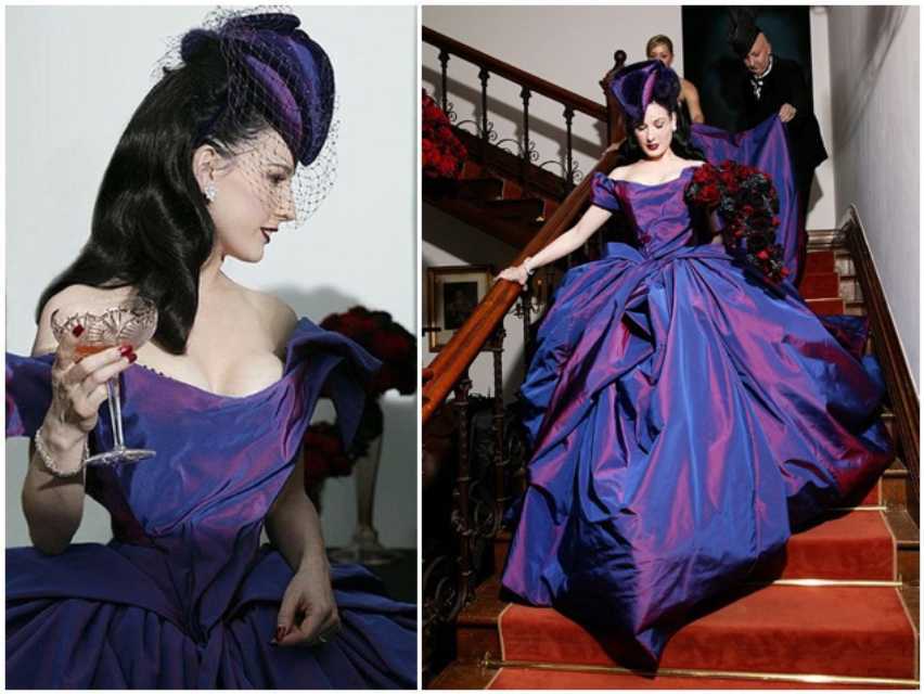 - Дита фон Тиз блистала в подвенечном платье из тафты темно-винного цвета с переливами лилового.