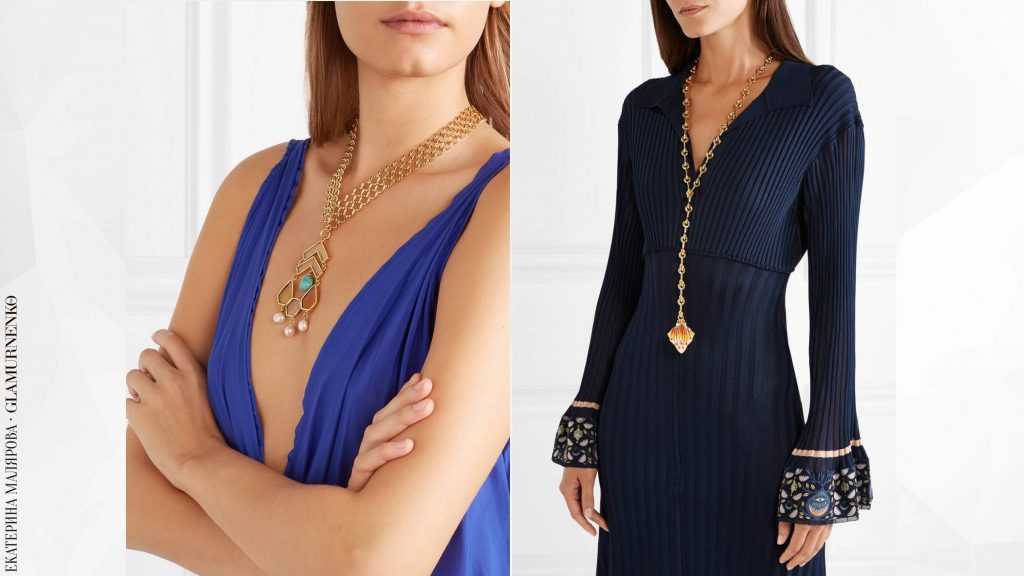 Еще примеры длинных кулонов. Такая форма зрительно сужает плечи и удлиняет шею