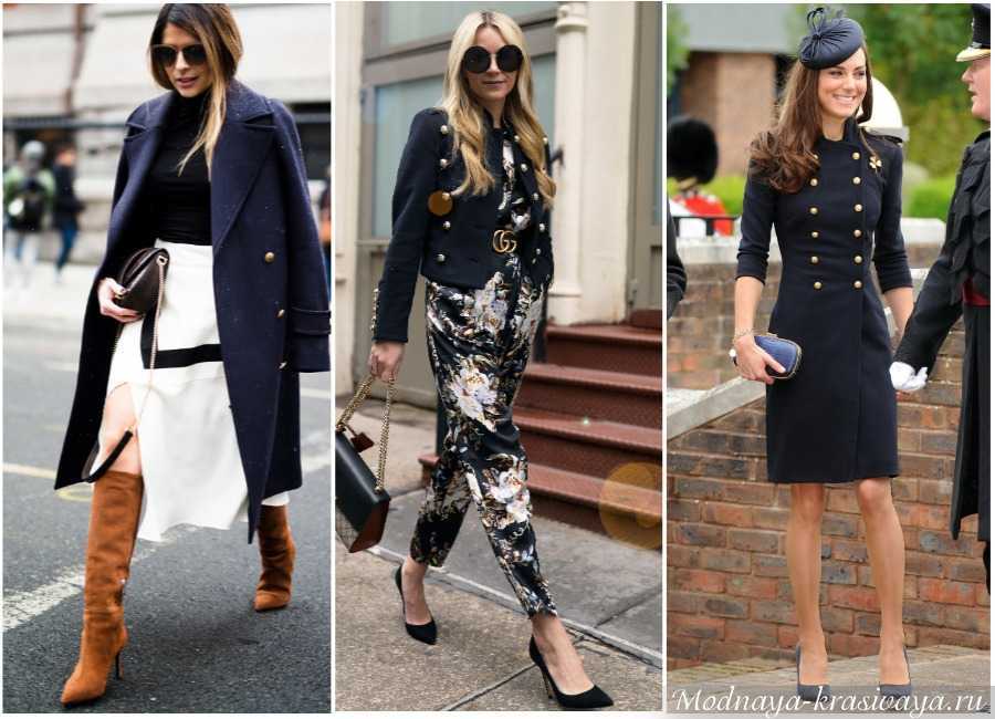 В современных условиях сложно обойтись без куртки. В стиле милитари – это куртка-парка, авиатор, бомбер, тренч (также заимствованный у военных). Романтическим девушкам – укороченные куртки и пиджаки с гусарскими эполетами, золотыми нашивками, металлическими пуговицами.