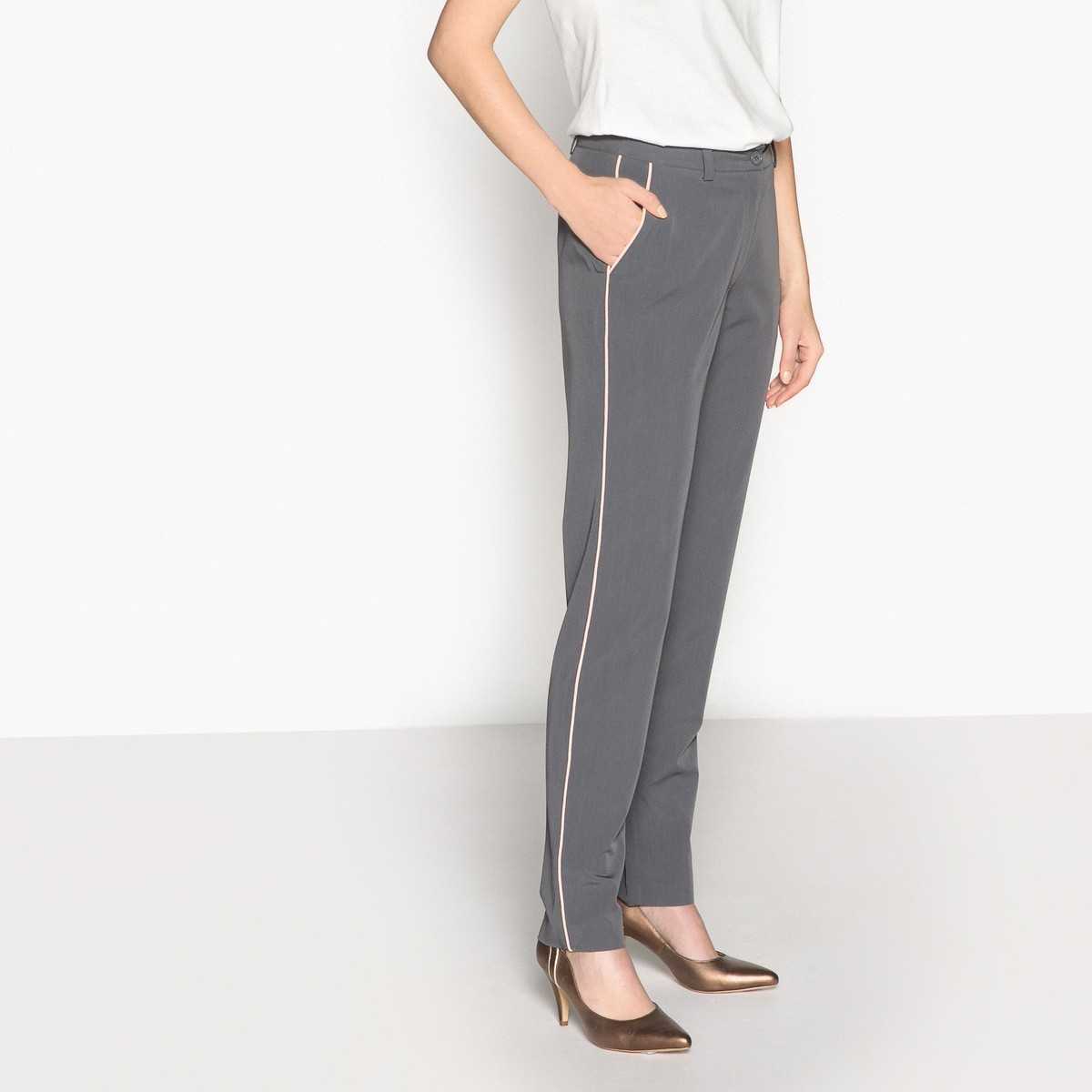 Брюки с лампасами легко сочетать. Дизайнеры рекомендуют составлять комбинации с блузками, жакетами и обувью на высоком каблуке.