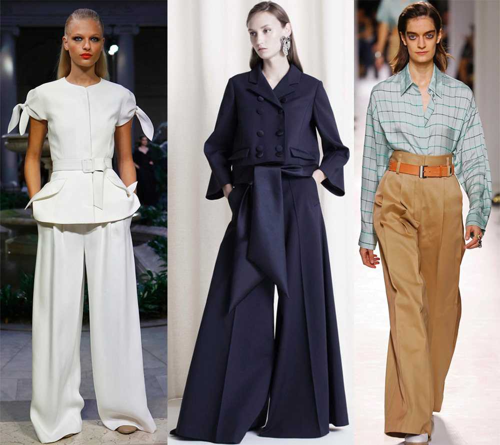 Брюки в таких комплектах не обязательно должны быть дудочками. Они могут быть свободными, деловыми, прямыми, зауженными или немного расклешенными. Что касается длины брючин, то в тренде будут три варианта: