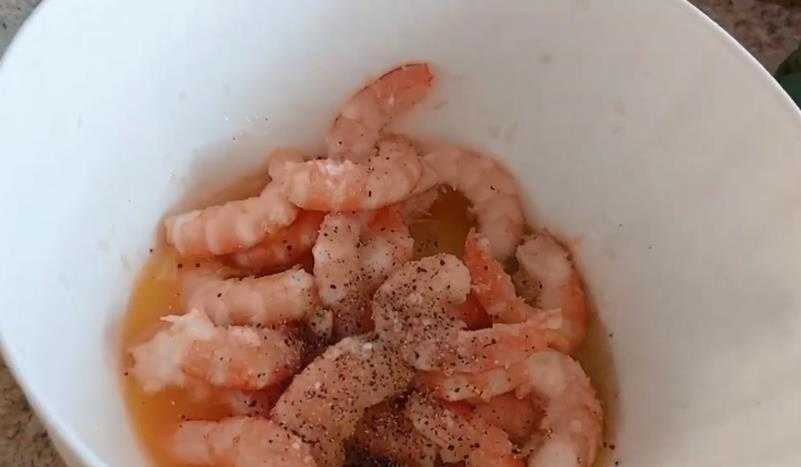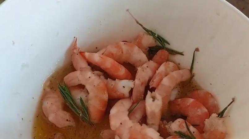 Креветки следует разморозить, удалить голову и панцирь. Сложить морепродукты в миску, полить свежевыжатым апельсиновым соком. Посыпать солью и перцем, полить оливковым маслом и перемешать.