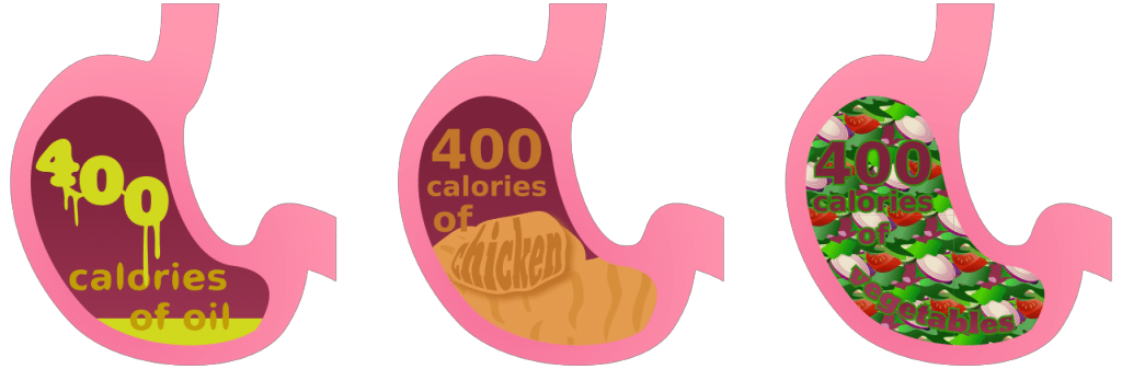 Ясно, что жирным и сладким перебрать по калориям намного проще, чем овощами и зеленью. Съесть 3000 калорий из сливочного масла проще, чем из сельдерея. Ни один живой человек не в состоянии съесть сельдерей на 3000 калорий, потому что это 22 килограмма.