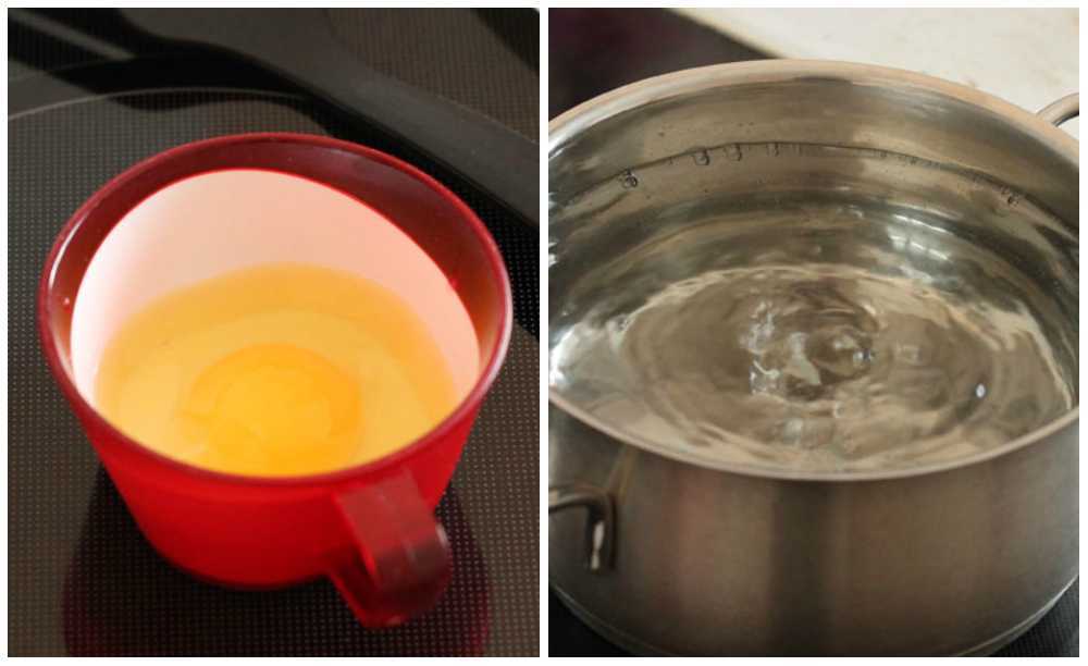В этом варианте я добавил в воду пару столовых ложек уксуса, что бы белок быстрее свернулся в кислой среде.