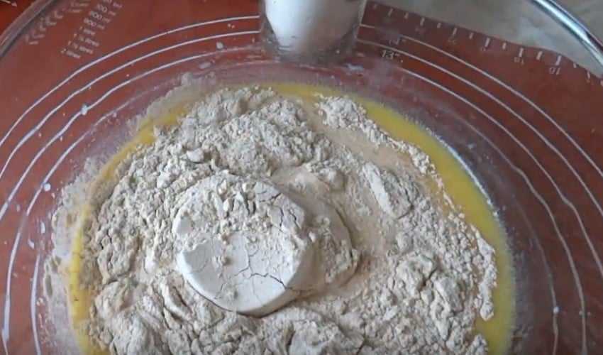 - Вмешивается гречневая мука, масса должна быть полностью однородной.