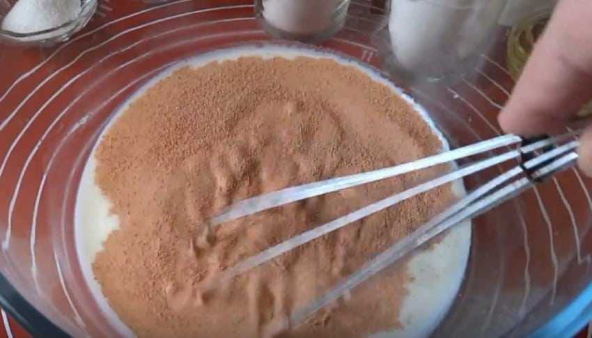 - Постепенно вливается теплое молоко, одновременно следует перемешивать.