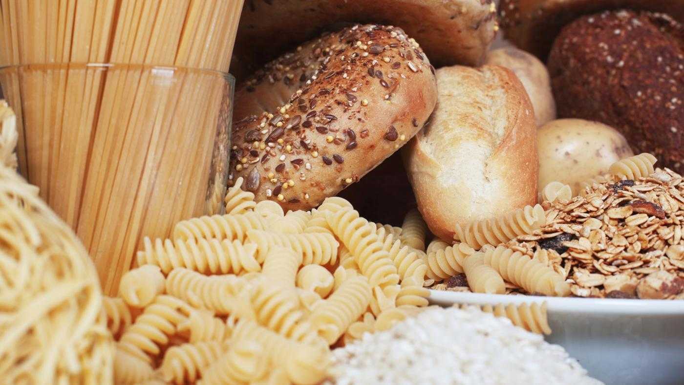 Фото 2. Продукты, содержащие медленные углеводы: макароны из муки грубого помола, хлеб со злаками, мюсли