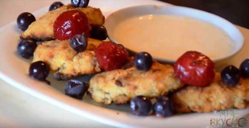 Подать такие творожнички (а их иногда так тоже называют) можно со сметаной, джемом, шоколадной пастой. Поэтому сахара кладем минимум, компенсируя все сладкой начинкой.