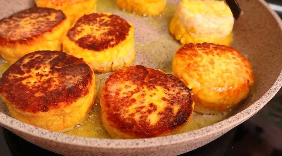 - После обжарки сырников с двух сторон их нужно закрыть крышкой и подержать еще пару-тройку минут на минимальном огне, чтобы манка разбухла полностью.