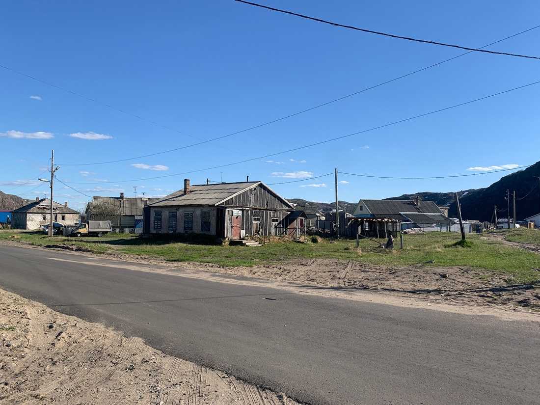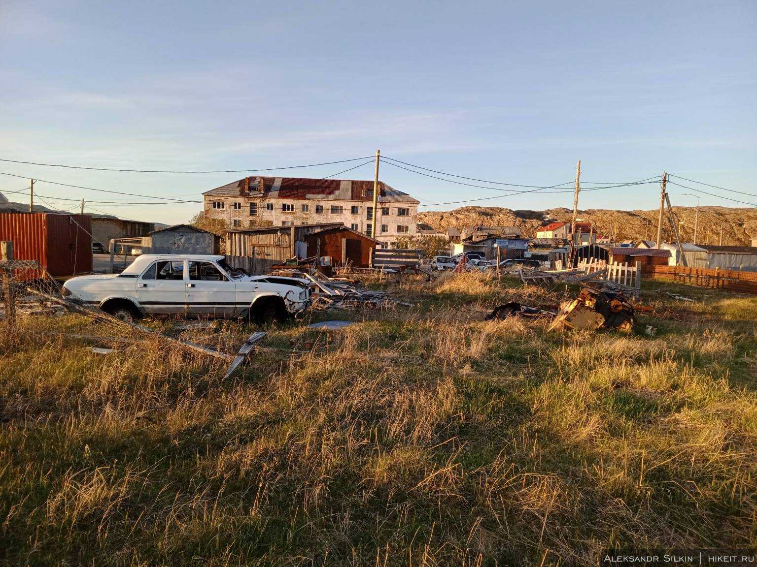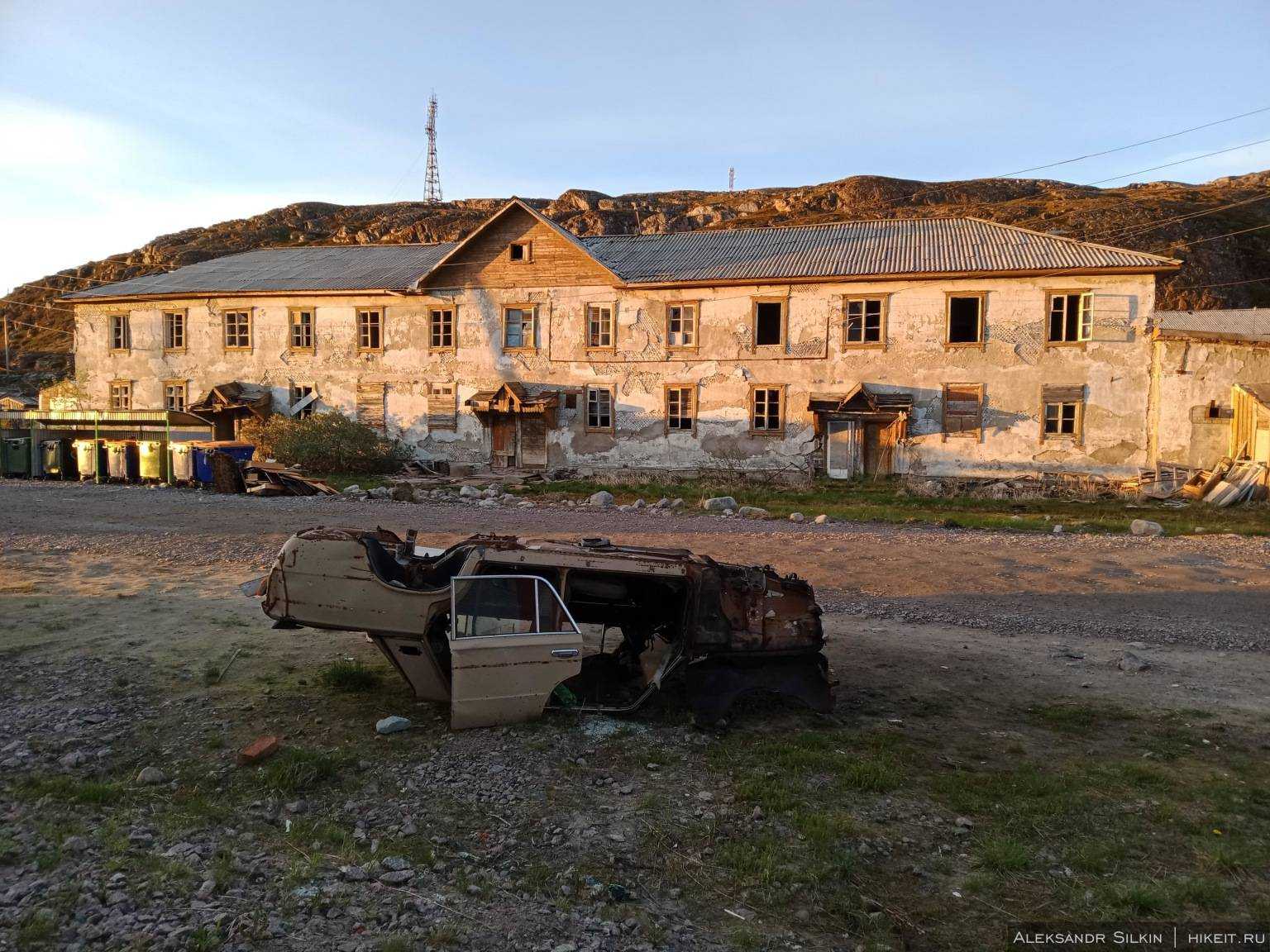 Новой называют территорию бывшего села Лодейное, которое вошло в состав Териберки в 1957 году. Чтобы туда попасть надо пересечь реку по тому самому, не раз появлявшемуся в «Левиафане» мосту. Пейзажи здесь выглядят несколько современнее, но все так же сурово: типовые пятиэтажки, старые заводские ангары и гаражи на фоне серых скал.