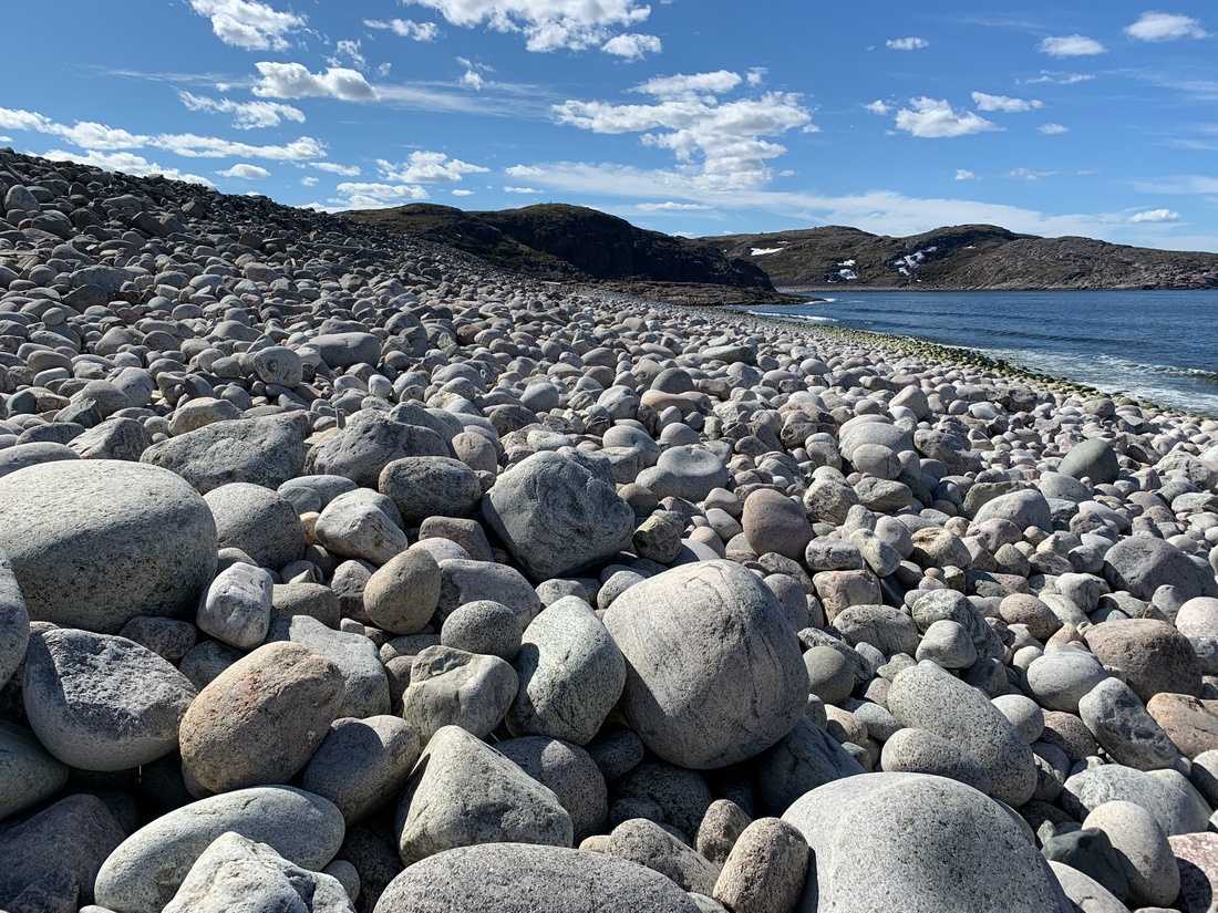 Пляж с необычными камнями появился после отступления Баренцева моря. Скалы и пляж — идиллическое место для наблюдения за морем. Своё название пляж получил за форму камней, напоминающие яйца, будто отложенные драконом.