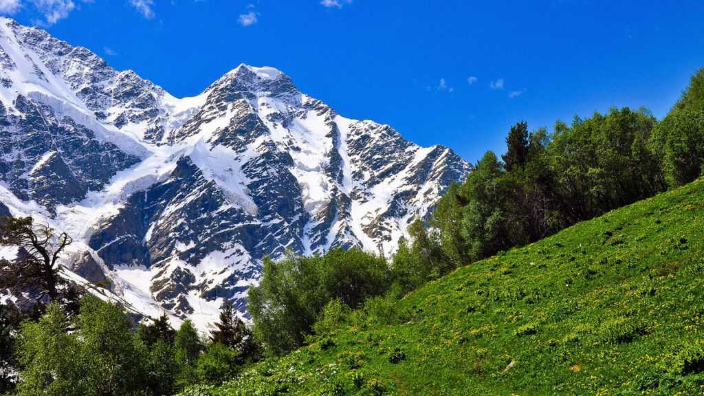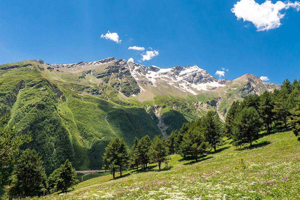 Домбай — это завораживающие пейзажи заповедных сосновых лесов, водопадов, кристально чистых рек и грозных горных уступов.