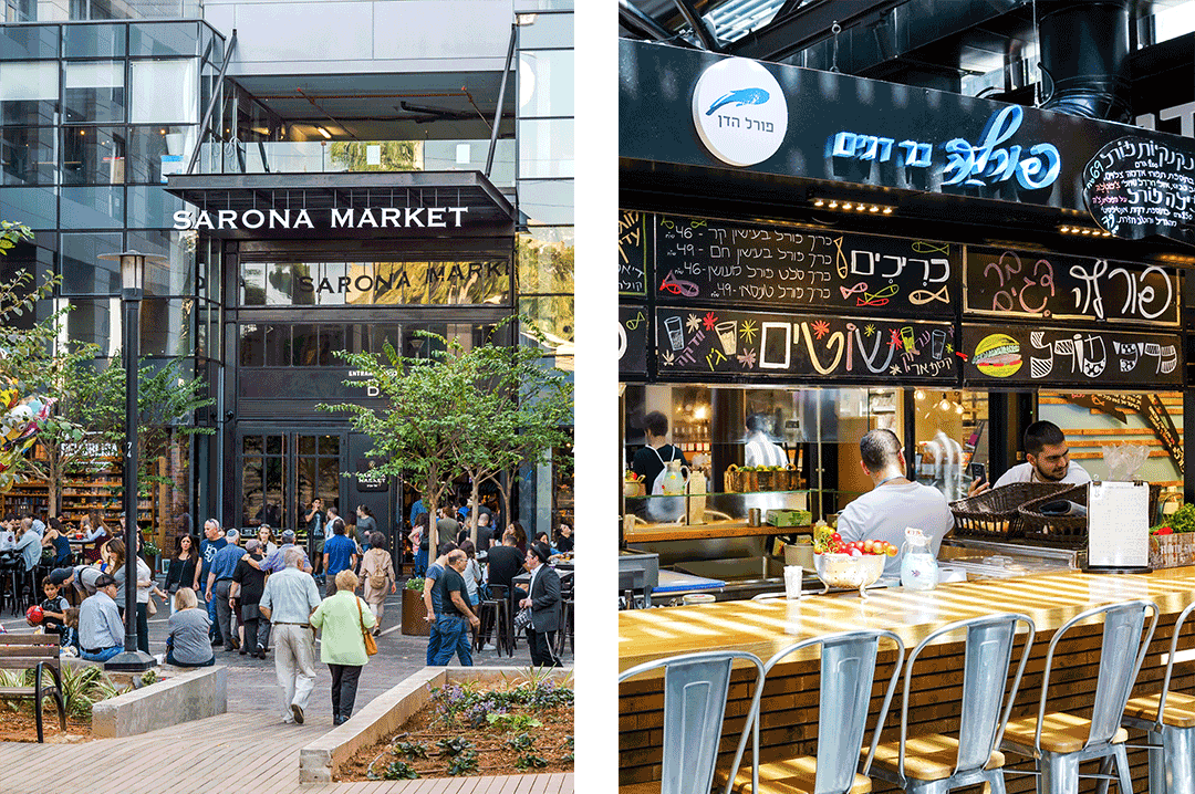 Крытый рынок Сарона — брат-близнец нью-йоркского Челси. Рестораны авторской кухни чередуются с лавками с деликатесами со всего света: бальзамический уксус из Италии, морепродукты из Атлантики, ягнятина и телятина с Голанских высот — правда, всё по довольно высоким ценам.