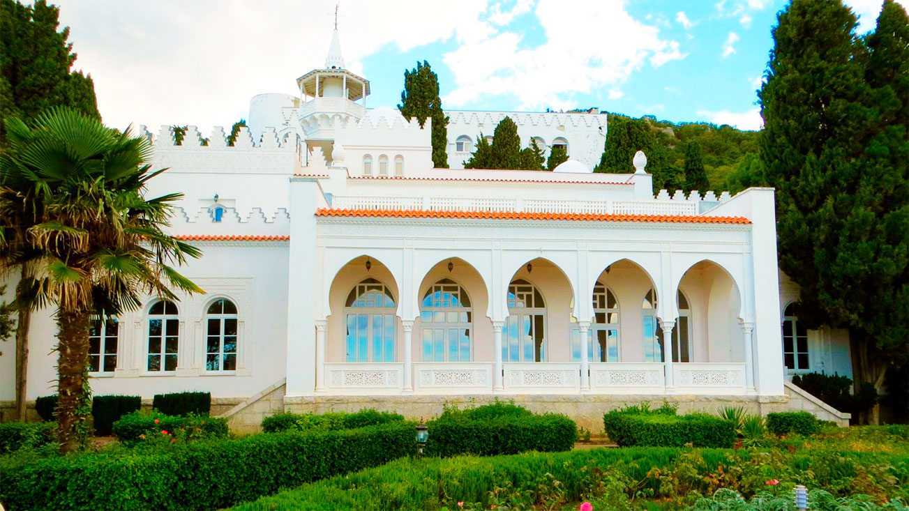 Белоснежный дворец в восточном стиле был возведен в поселке Курпаты. Его построили в начале ХХ века для великого князя Дмитрия Константиновича. Небольшой особняк, татарское название которого переводится как «маленький», возвышается над морем на краю крутого обрыва.
