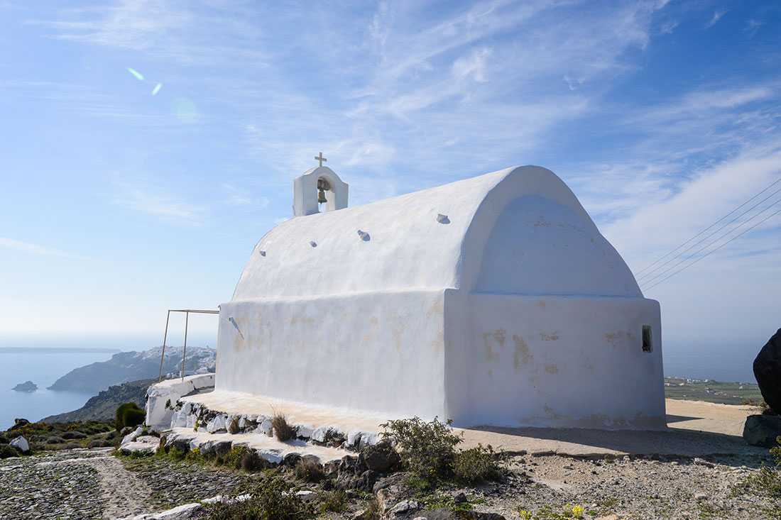 Из Пиргоса дорога ведет к вершине горы Профитис Илиас (584 метра) – самой высокой точке Санторини, откуда открывается потрясающий вид на остров и море. Здесь находится одноименный монастырь («Профитис Илиас» – в переводе с греческого «Илья Пророк»), который сегодня открыт для посещения туристами. Внутри вы можете увидеть церковь с богато украшенным резьбой иконостасом.