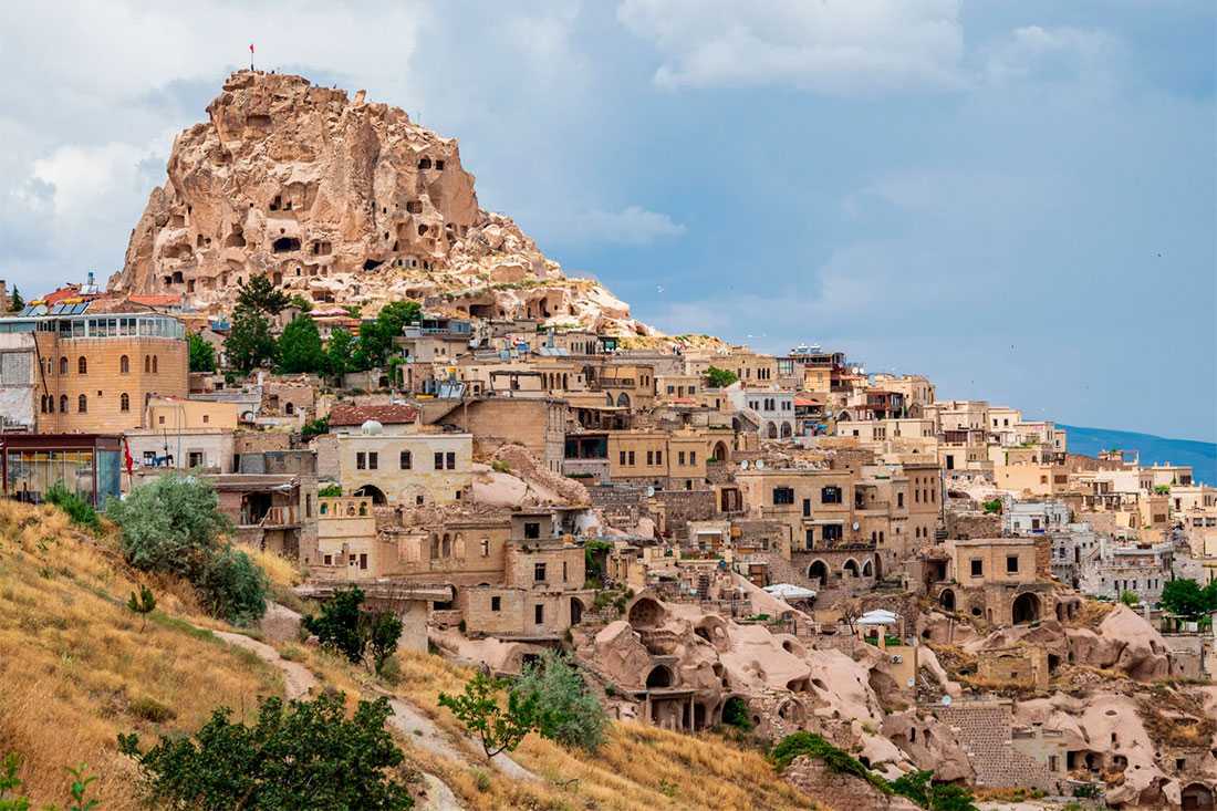 Живописный город Учисар или Учхисар раскинулся вокруг скалы-крепости с бесчисленными комнатами, переходами и лестницами. Она служила не только местом жительства для местных, но и входила в состав оборонительного комплекса. Здесь сохранились двери-жернова, как в подземных городах, которые невозможно было открыть снаружи.
