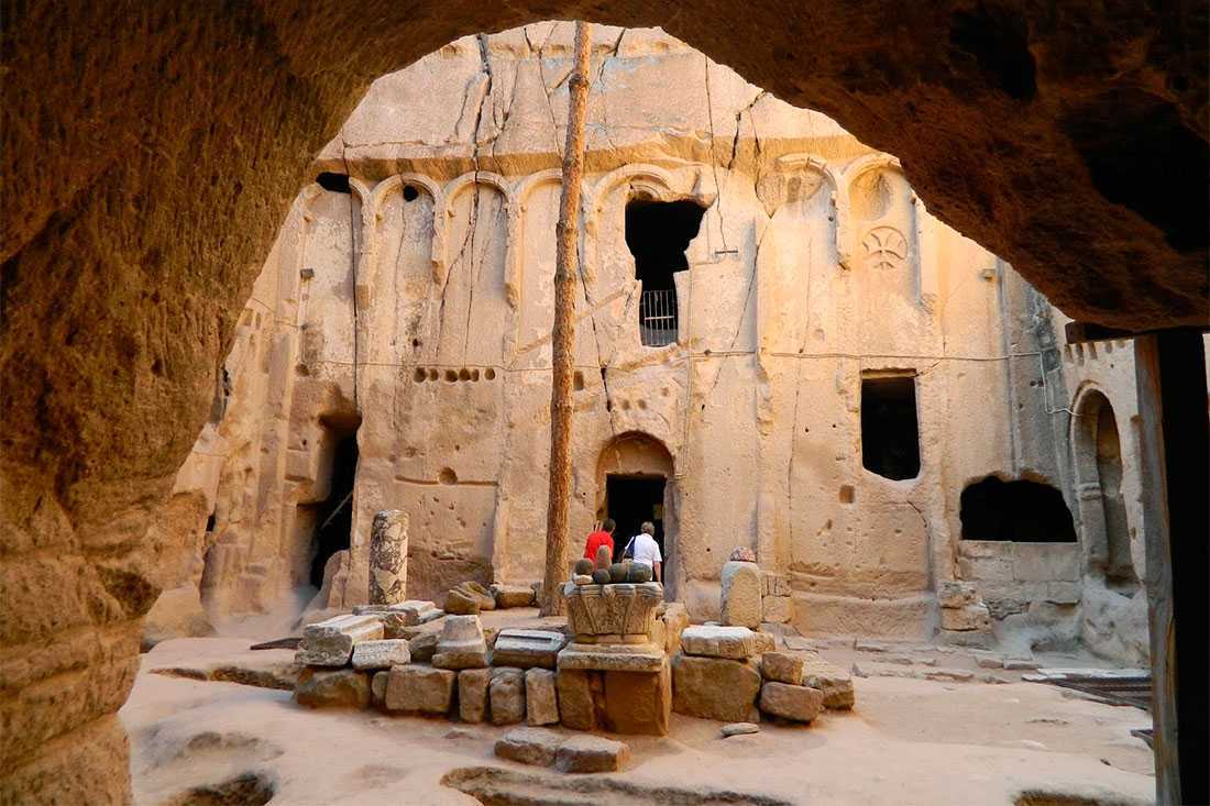 Мягкость породы способствовала появлению различных объектов комплекса Гёреме: монахи выдалбливали в скалах многочисленные церкви и храмы. Раньше их насчитывались сотни, но в хорошем состоянии сохранилось лишь порядка 30 штук. Во многих уцелели великолепные фресковые росписи XI-XII вв. Самые известные скальные храмы Гёреме – церкви Святого Василия и Святой Варвары, а также Змеиная и Изогнутая церкви.