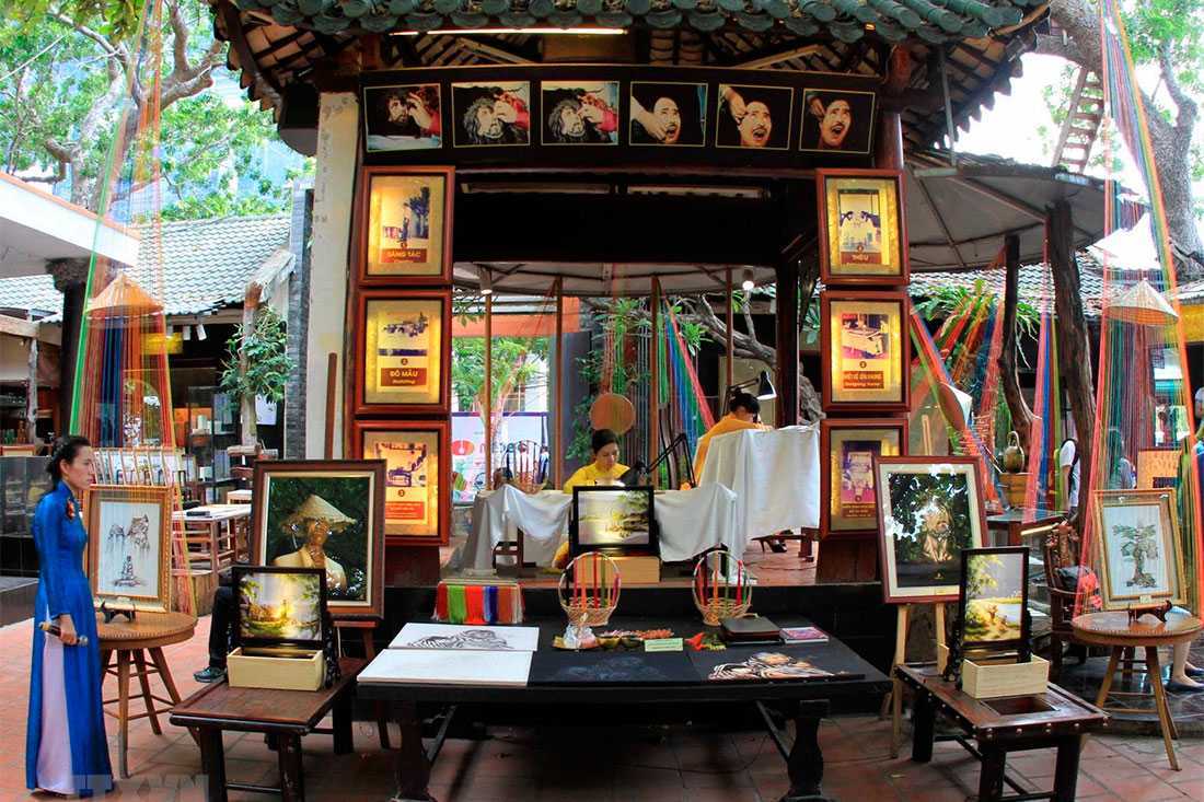 Мастера использовали вековые традиции вышивания (в глубокой древности пришедшие во Вьетнам из Китая), воплощая историю Вьетнама через яркие изделия ручной работы.