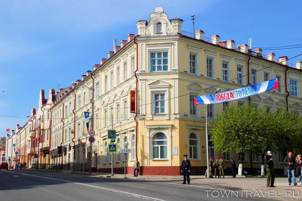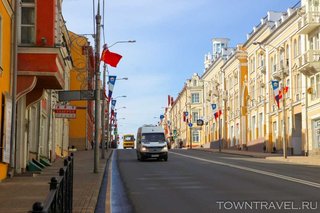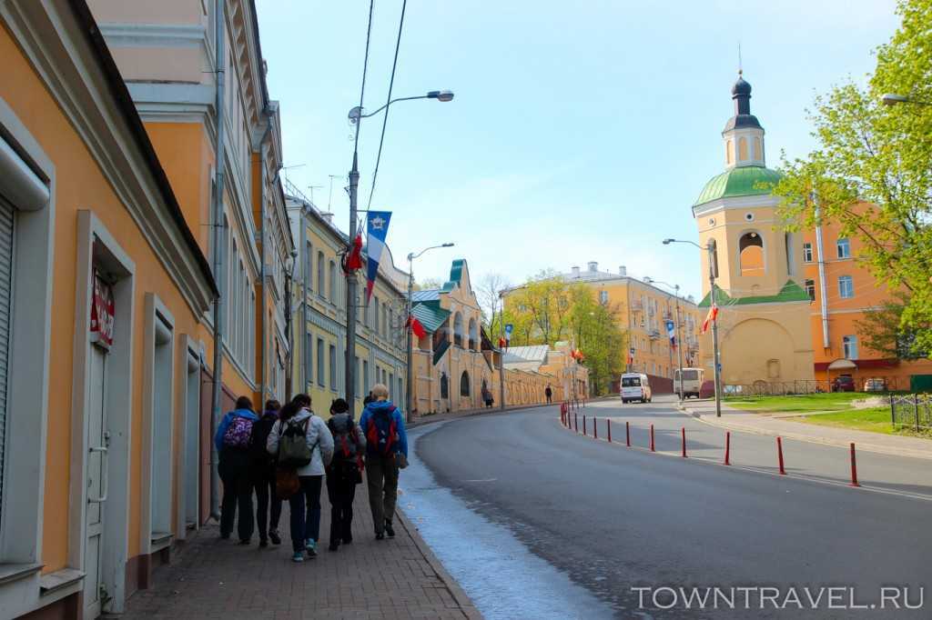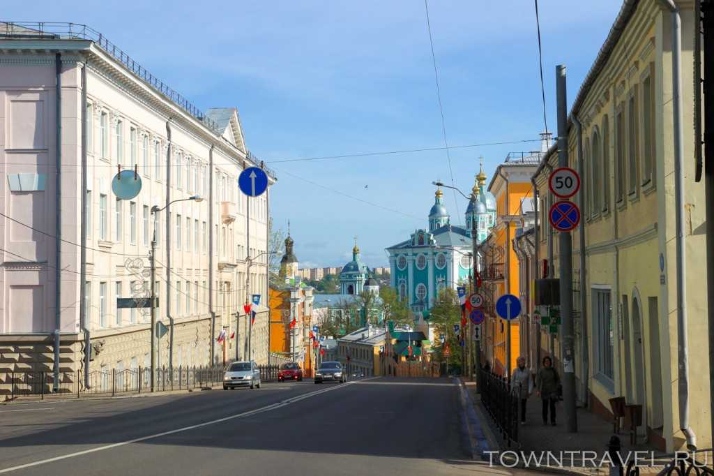 Оглянувшись назад, наблюдаем прекрасный вид Большой Советской улицы с Успенским собором, возвышающимся на холме.