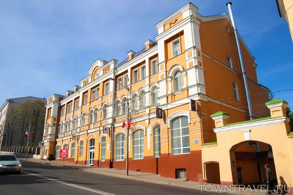 Передвигаемся по Большой Советской дальше и видим по правую сторону просто какой-то дворец. Это Дом Книги — памятник архитектуры XIX века, построенный купцом Павловым, который в свое время торговал в Смоленске мануфактурой. Внутри здания просторный торговый зал и апартаменты, в которых жил сам торговец.